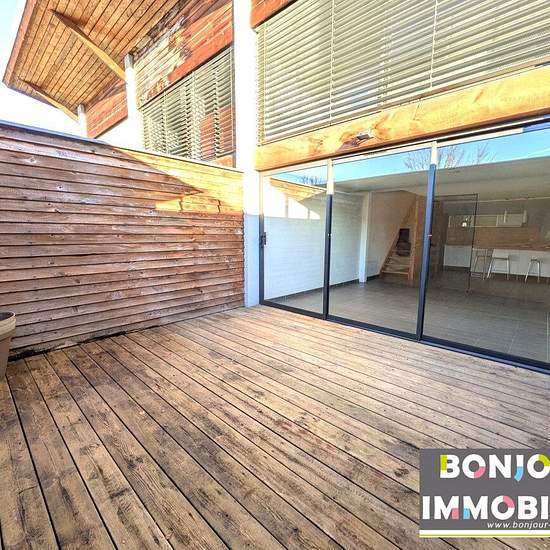 A LOUER - ST LAURENT DU PONT - Duplex 3 pièces de 83 m² + un patio de 16 m² - Comprenant une cuisine équipée sur séjour, une buanderie, un WC, à l'étage une salle de bains avec baignoire, deux chambres et une mezzanine pouvant se transformer en 3ème chambre / Chauffage Electrique / Disponible de suite / LOYER 670 € / HONORAIRES D'AGENCE 502.50 € (Honoraires rédaction de bail 402 € + Frais d'état des lieux 100.50 €) / DEPOT DE GARANTIE 670 € / PAYEZ les HONORAIRES et le DEPOT DE GARANTIE en 2 Fois SANS FRAIS / Honoraires de 503 € TTC à la cha...