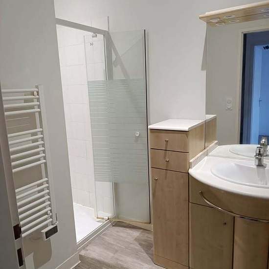 Appartement st macaire Appartement 3 pièces 72m2 , Libre de suite Appartement neuf sur deux étages parfaitement isolé avec chauffage climatisation air/air. Au premier étage, vous trouverez une pièce de vie ouverte sur la cuisine meublée. Au deuxième étage deux chambres mansardées. Une jolie salle d’eau avec douche et un wc séparé . Un garage fermé complète le logement. Merci de me contacter au 06;14;39;77;51