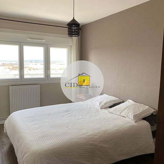 Coquet appartement F3 meublé de 64.70 m2, résidence Les Garennes (proximité Gare), au 6e étage, comprenant : Hall d'entrée, séjour ouvrant sur un balcon, cuisine avec un cellier, 2 chambres, 1 dressing, SDB, WC. Cave. Place privative de parking. Chauffage et eau compris dans les charges. Libre mi décembre.