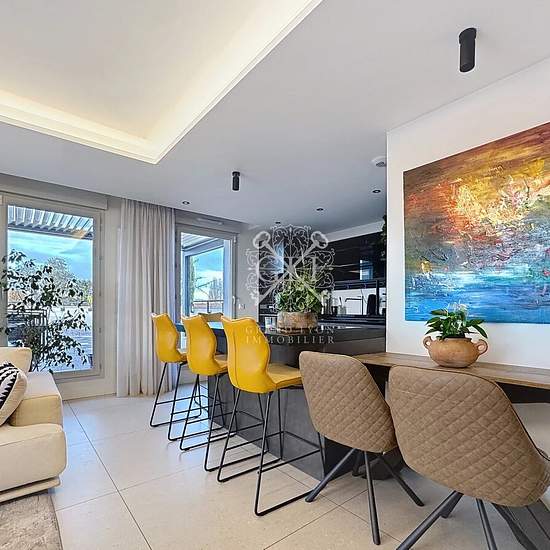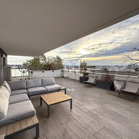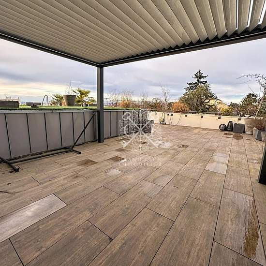 T3 D'EXCEPTION MEUBLÉ 16 rue Edmond Rostant - 69800 - SAINT-PRIEST Venez découvrir, au sein d’une copropriété sécurisée, ce logement T3 de 82,44 m² avec ascenseur et son rooftop de 191,33 m². Le bien se compose d’une entrée avec placard s’ouvrant sur un vaste séjour avec une cuisine ouverte, meublée et équipée, ainsi qu’une terrasse de 191,33 m² offrant une vue panoramique. Du côté nuit, vous trouverez deux chambres, ainsi qu’une salle de bain avec baignoire et douche à l’italienne, un WC séparé et une buanderie. Deux garages fermés et sécur...