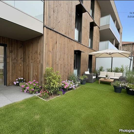 Appartement T3 Neuf avec Jardin et Garage à Saint-Romain-en-Gal (69560) Découvrez ce magnifique appartement T3 entièrement meublé, situé au 1er étage d'une résidence neuve construite en 2025. Avec une surface habitable de 65 m², cet appartement allie confort et modernité. Il comprend 2 chambres spacieuses avec placard intégré, une salle de bains, un WC indépendant, et une cuisine américaine aménagée et équipée ouverte sur le séjour donnant lui-même accès au jardin. Les ouvertures en PVC en double vitrage garantissent une isolation thermique ...