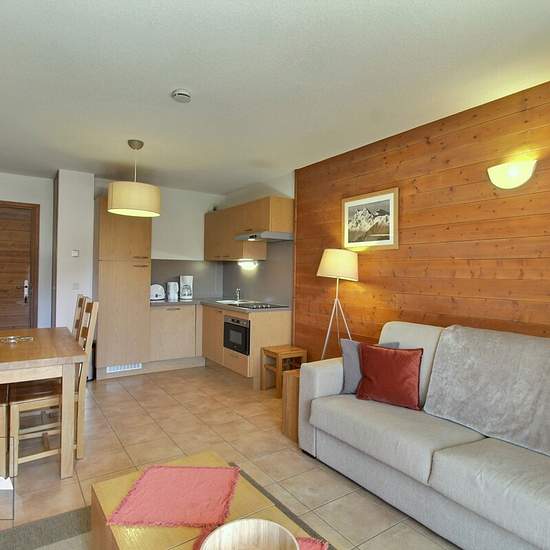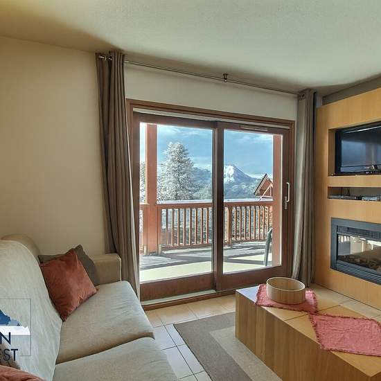 A propos de ce bien Situé au 2nd étage de la Résidence L'à?toile des Cimes, cet appartement de typologie 2 chambres peut accueillir jusqu'à 06 personnes. D'une superficie de 51m2, l'appartement se compose : - D'une cuisine entièrement équipée ouverte sur un séjour lumineux ; - D'une terrasse exposition Ouest avec une vue sur les sommets de la Haute-Tarentaise et le Mont-Pourri ; - D'une première chambre avec un lit double, placards de rangement ; - D'une seconde chambre avec deux lits simples, placards de rangement ; - D'une salle de bain i...