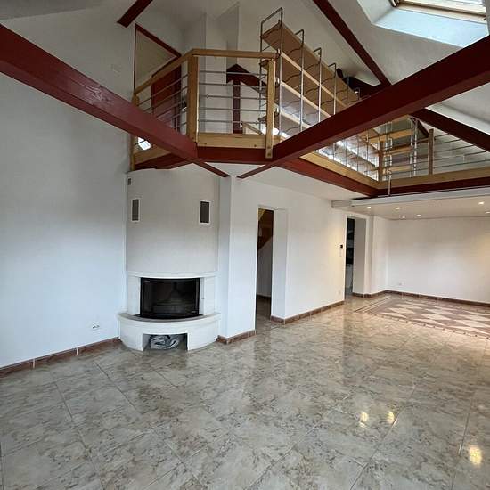 STRASBOURG - CRONENBOURG Au 3ème étage sans ascenseur d'une petite copropriété, atypique 3/4 pièces duplex de 101m². L'appartement est composé d'une entrée, une grande pièce principale avec cheminée et cuisine équipée ouverte, une chambre et une salle d'eau avec wc. A l'étage, une chambre , un grand palier pouvant servir de bureau et une jolie terrasse. Chauffage individuel au gaz Possibilité de louer un garage en sus Contact : Fanny MANGEOT 06