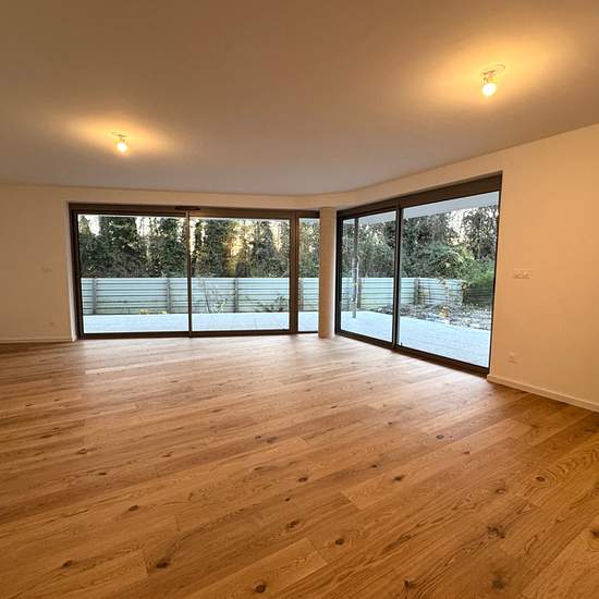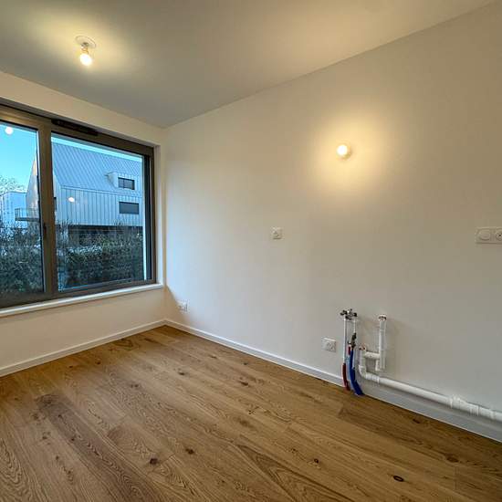 At the beginning of La Robertsau, located at 23 Route de la Wantzenau, close to the European Institutions, the tram and bus stops. VAUBAN Immobilier offers you, in a new high-end residence, a magnificent three-room apartment with a terrace and private garden. First occupancy! Located on the garden level, a beautiful three-room apartment of 87.30 m² comprising an entrance with closet, a large and bright living area of 40 m² opening onto a large terrace of 61.80 m² as well as a garden of 182 m², a fitted kitchen (will be installed at the beg...