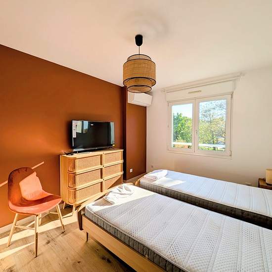 In the heart of the Robertsau district, close to the Château de Pourtalès, newly renovated air-conditioned 3-room apartment of 88 m², fully furnished. It will charm you with its brightness, its spaces and its quality features. Entrance with storage, living room opening onto a balcony, and a closed fitted and equipped kitchen opening onto another balcony. In the sleeping area you will find 2 parqueted bedrooms with storage, a shower room, a bathroom and a separate toilet. A parking box and a cellar are included. Fees of €1,144 including VAT p...
