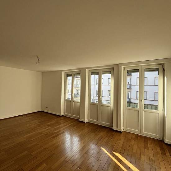 STRASBOURG - ANCIENNE DOUANE Rue de la Division Leclerc, nice renovated three-room apartment of 78 m² on the 3rd floor with elevator. The apartment consists of an entrance hall, a new fitted kitchen, a living room, two bedrooms (one with a built-in closet), a shower room and a separate toilet. Rented with a cellar. Parking available for an additional €90/month. Heating included in the charges. Contact: Fanny MANGEOT 06 Contact