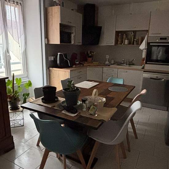 T3 - TONNAY-CHARENTE. T3 rénové situé au première étage sans ascenseur : pièce de vie avec cuisine aménagée et équipée (plaques de cuisson, hotte, four), salle de bain avec WC, cellier, deux chambres. Chauffage électrique individuel - DPE D. Bien soumis à la GLI (Garantie de Loyer Impayé).. Libre à partir du 1er juin 2026.