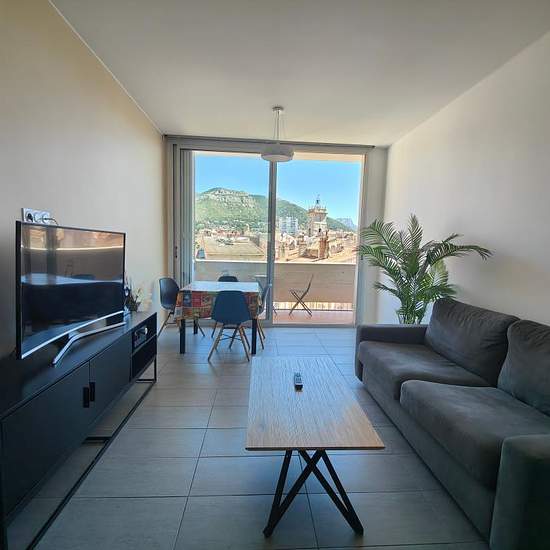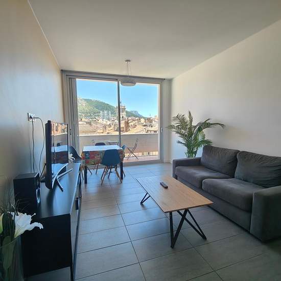 TOULON (83000) Centre-ville Découvrez cet appartement avec ascenseur meublé de type 3 à louer, idéalement situé en plein cœur de Toulon, au 18 Rue Henri Seillon. Avec une superficie de 69,62 m², cet appartement en parfait état offre deux chambres, un séjour lumineux ouvrant sur un balcon avec vue dégagée, et une cuisine aménagée et équipée. La salle d'eau moderne dispose d'une douche à l'italienne. Profitez d'une place de parking privative et de la proximité immédiate des transports en commun, des écoles et des commerces. Loyer : 1300 EUR. N...