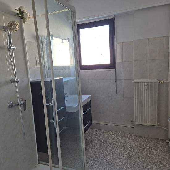TOULON Aguillon, dans résidence recherché, appartement T3 de 84 m² avec balcon de 12 m², cave et stationnement. Climatisation, double vitrage, exposition sud, vaste séjour de 32 m², cuisine séparée aménagée, WC séparé. Belles prestations. Disponible immédiatement. Loyer 900 euros Charges 190 euros (chauffage, eau froide et eau chaude inclus).