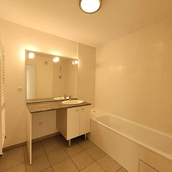 TOURNEFEUILLE au cœur de la ville, Appartement T3 de 60 m² en 3eme et dernier étage. Entrée avec placard, Séjour lumineux donnant sur grand Balcon de 10 m², Cuisine ouverte semi équipée (table de cuisson vitrocéramique, hotte et placards). Dégagement nuit, 2 Chambres avec parquet et placards, Salle de bains (vasque, baignoire et sèche serviettes) et WC séparé. Deux places de parking en sous sol. Logement agréable avec chauffage individuel au gaz; situé au pied des commerces, transports, accès rocade Arc-en-Ciel. Logement soumis à la LOI PINE...