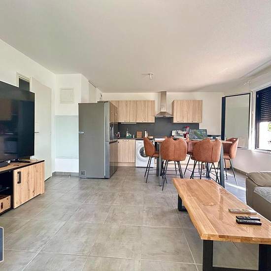 APPARTEMENT T3 RÉCENT AVEC TERRASSE À LOUER : Appartement récent T3 de 65 m² situé au rez-de-chaussée d'une résidence sécurisée. L'appartement se compose de trois pièces : un séjour lumineux ouvert sur une cuisine aménagée et équipée (plaques, hotte, four), deux chambres spacieuses et une salle d'eau moderne et de WC séparé. Le rez-de-chaussée permet de profiter d'une belle terrasse, idéale pour les journées ensoleillées ou pour créer un coin détente. Un emplacement de parking est également inclus, facilitant vos déplacements au quotidien. S...