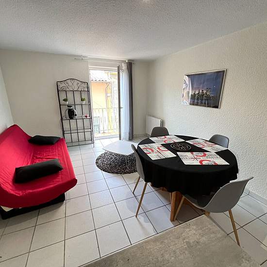 Rue du Commerce, proche centre ville et pole bus, appartement entièrement équipée au premier étage, composé d'une cuisine équipée ouverte sur salon, deux chambres avec dressing, salle de bains et toilette. Deux balcons. Double vitrage. Provisions pour charges : entretien et minuterie des communs. Disponible de suite