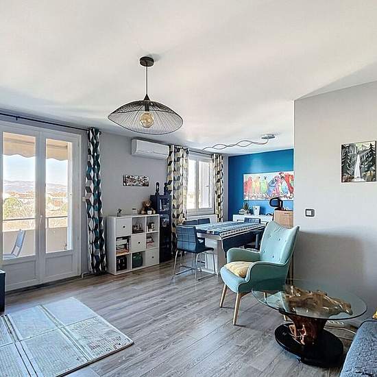 Appartement À Louer. Dans le quartier recherché et paisible de Châteauvert, au 4ᵉ et dernier étage avec ascenseur, découvrez ce bel appartement T3 entièrement rénové d’environ 80 m². Il se compose d’un hall d’entrée avec rangements, d’une cuisine meublée et équipée (plaque, hotte, lave-vaisselle) avec coin cellier, d’une grande pièce de vie lumineuse offrant une vue dégagée sur l’Ardèche et Crussol, de deux chambres dont une avec rangements, d’un grand espace dressing, d’une salle d’eau et de WC séparés. Vous profiterez également d’un balc...