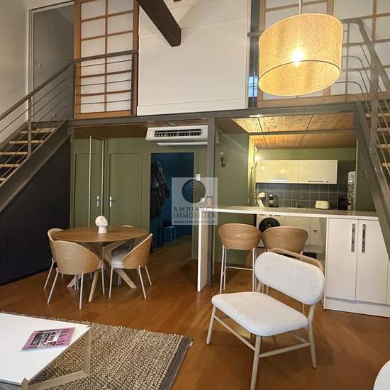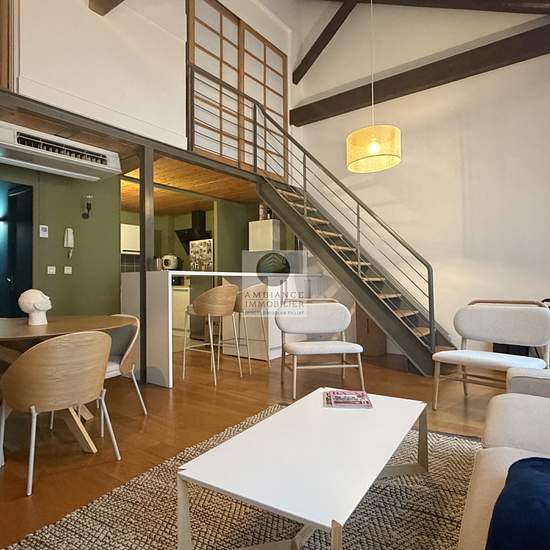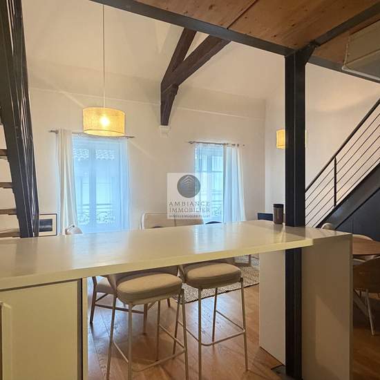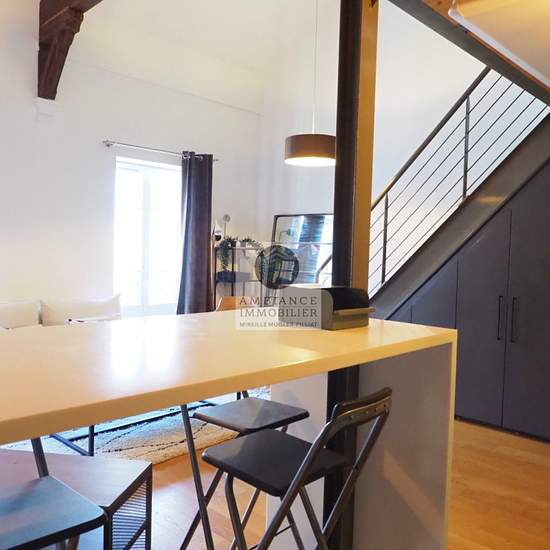 VALENCE centre historique, le calme, de beaux volumes, une conception atypique et une rénovation de qualité dans un esprit contemporain pour ce F3 en duplex de 74m2 au 2ème et dernier étage avec ascenseur d'un bel immeuble Haussmannien. Une superbe pièce de vie avec charpente apparente : salon-séjour cuisine intégrée de 34m2, 2 chambres avec placards, salle d'eau avec douche à l'italienne et vasque. Huisseries double vitrage, chauffage et climatisation par pompe à chaleur. Accès à une zone de parkings réservés aux résidents. DPE : D 186 - GE...