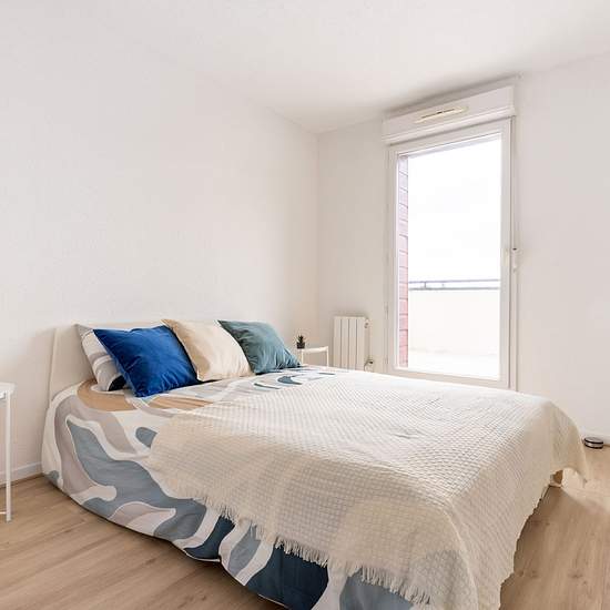 Logement situé à St Saulve à 200m de Valenciennes. Cet appartement de 50m2, entièrement rénové en 2025 et situé au 5ème étage avec ascenseur, possède un grand balcon et deux places de parking privé. Le séjour est meublé d'un canapé, d'une table basse d'un meuble TV et d'une TV. La cuisine est entièrement équipée (micro-onde, plaque de cuisson vitrocéramique, four, hotte, frigidaire et tous les ustensiles de cuisine). La salle a manger possède une table ronde et quatre chaises. La salle de douche et composé d'un meuble vasque, un WC et un lav...