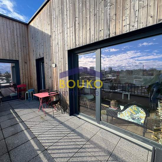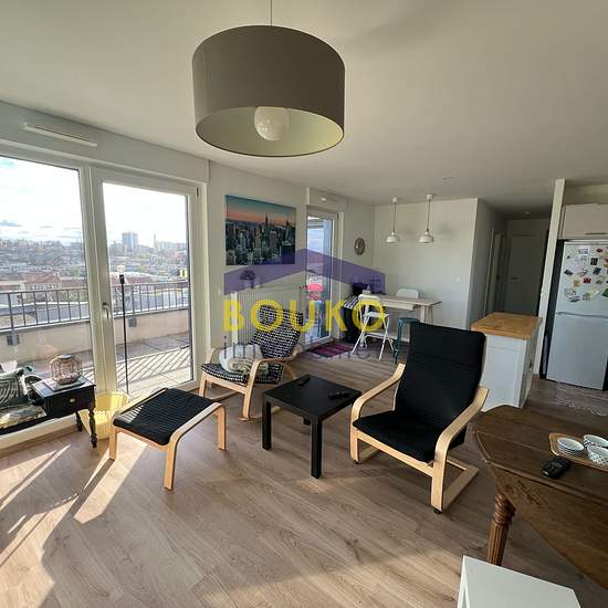 Appartement T3 neuf à VANDOEUVRE LES NANCY en ROFF TOP composé 1 entréé, 1 salon salle à manger avec accès sur terrasse , 1 cuisine américaine équipée, 2 chambres, 1 salle de bain. Une place de parking Loyer 650 euros + 150 euros de charges . Possibilité de garage : 75 Euros Libre 01/02/2026 FA 700 euros BOUKO IMMOBILIER - -
