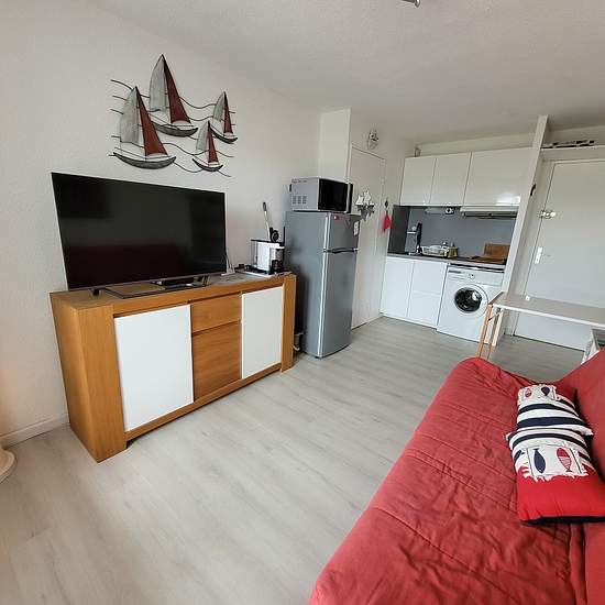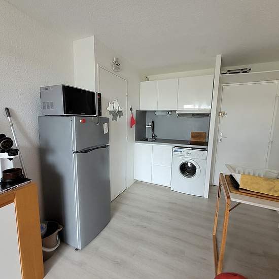 Appartement (31m²) au 2ème étage sans ascenseur dans résidence les jardins de l'océan avec piscine collective et parking. Loggia (plancha+ mini-four) avec belle vue sur jardins communs. Animaux acceptés Séjour (TV+ clic-clac 140) /coin cuisine (lave-linge, frigo-congel, plaques vitro-céramique, micro-ondes), salle-d'eau , WC séparé. 1 chambre (lit 140) dont fenêtre ouvrant sur loggia Environ 350m plage de Pontaillac, et commerces/casino de Pontaillac Surfaces et distances données à titre informatif et non contractuel. Du 31/05 au 5/07: 375 e...