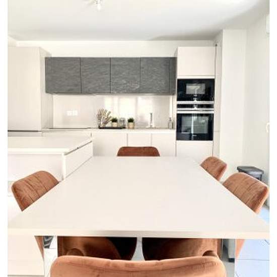 69200 VENISSIEUX - QUARTIER CHARREARD - T3 78m2 JARDIN 150m2 GARAGE La villa des Tilleuls est une résidence de standing entourée de maison. L'immeuble à été édifié en mars 2020. L'appartement se trouve au premier étage. Il est composé d'un hall d'entré desservant 2 chambres de 12 et 10m², d'une salle de bains et d'une grande pièce de plaisance (PMR access). La pièce de jour est ouverte sur une belle cuisine dernière génération toute équipée (Four, micro-onde, plaque induction, hotte, lave vaisselle, Réfrigérateur ...) Le salon est équipée d'...