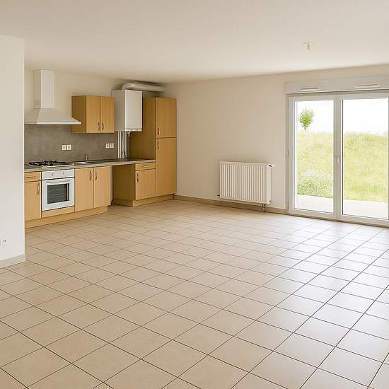 Sainte-Colombe, résidence La Colombière. Un appartement de type F3 en rez-de-chaussée comprenant : un hall avec placards, une salon séjour avec cuisine intégrée donnant sur terrasse avec petit jardin privatif, deux chambres, une salle de bains avec baignoire et WC. Le bien dispose également d'un garage et d'une place de parking privative. Eau chaude et chauffage : chaudière GAZ. Disponible début février.