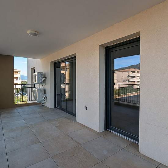 VESCOVATO - Arena - Rés U Centru - Appt T3 de 68m², au 2e étage avec ascenseur en 1ère de location, comprenant séjour avec cuisine aménagée et partiellement équipée, cellier, 2 chambres avec rangements, une salle d'eau et WC indépendant. Terrasse + 2 emplacements de parking privatifs en extérieur Entièrement climatisé Proche écoles et tous commerces Disponible 1er mars
