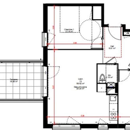 C401 LES JARDINS D'ADAM - A NE PAS RATER, AU DERNIER ETAGE D'UNE RESIDENCE RECENTE DE STANDING BBC A VILLEFRANCHE (Limite GLEIZE), PROXIMITE DES ECOLES, COMMERCES ET ESPACES VERTS, VENEZ PROFITER D'UNE BELLE TERRASSE ENSOLEILEE DE 16m², TYPE SOLARIUM. T3 doté d'une lumineuse et agréable pièce de vie avec cuisine équipée et aménagée (plaque vitro, four, hotte, meubles hauts et bas), accès terrasse, deux belles chambres distincts, dont une équipée d'un placard mural, salle de bain avec baignoire et vasque, WC séparés. Chauffage au gaz individu...