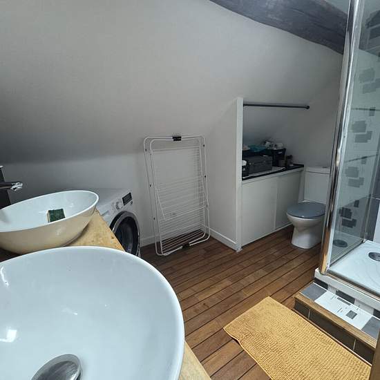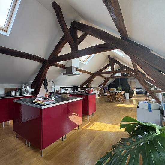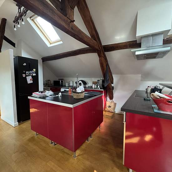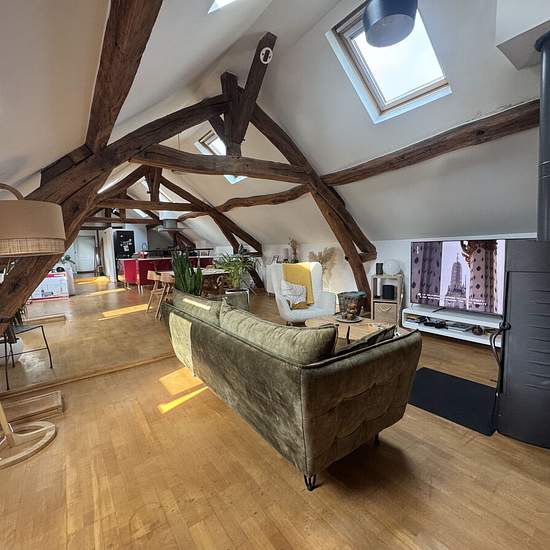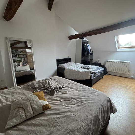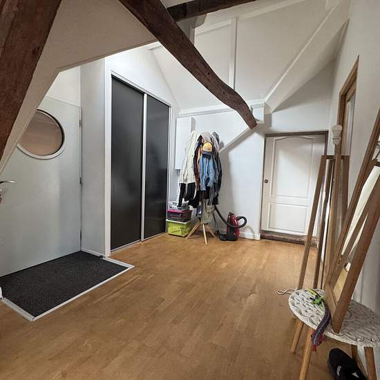 30mn villers cotterets, centre ville, loft situé au dernier étage d'un immeuble ancien, du charme avec entrée, séjour 70 m² avec poêle à bois et coin cuisine équipée, 2 chambres, salle de douches et wc. Libre fin février 2026. Honoraires agence eur 650.1.