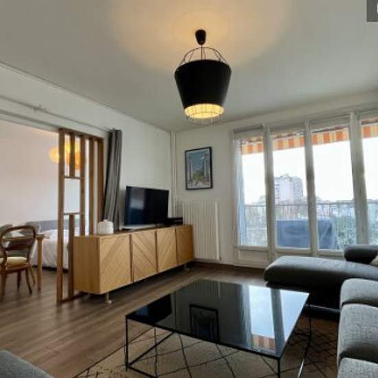 Nouveau ! Spacieux appartement situé au pied du métro Gratte-Ciel à Villeurbanne. Très bien équipé (cuisine séparée avec four, grand réfrigérateur, vaisselle, micro ondes, lave vaisselle, lave linge, TV, Internet,..), cet appartement vous plaira car il est très lumineux, bénéficie d'une vue rare, traversant, au calme, confortable et contemporain. Il est équipé de 2 chambres chacune équipée de 2 lits doubles. Balcon avec une superbe vue. Stationnement possible dans la résidence. Climatisation.