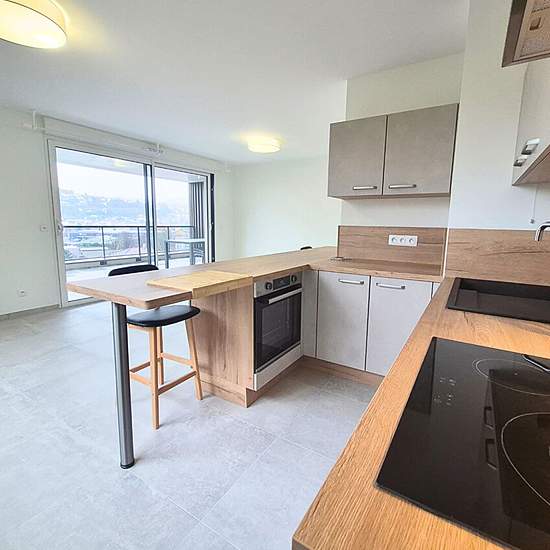 VOIRON CRIEL - 2 PIECES MEUBLE NEUF + TERRASSE + GARAGE - 62 m² - rue de Maubec - Disponible de suite Dans la résidence de 2025 HAUT DE GAMME - Le PARC EDENIA, sur les hauteurs de Maubec, secteur CRIEL, au coeur d'un îlot paysager, découvrez ce T3 contemporain neuf loué meublé. Au 1er étage avec ascenseur, cet appartement lumineux et fonctionnel se compose d'une entrée équipée de placards, d'une pièce de vie de plus de 26 m2 accueillant séjour et une cuisine neuve toute équipée (four, hotte, plaque de cuisson induction, micro-onde, réfrigéra...