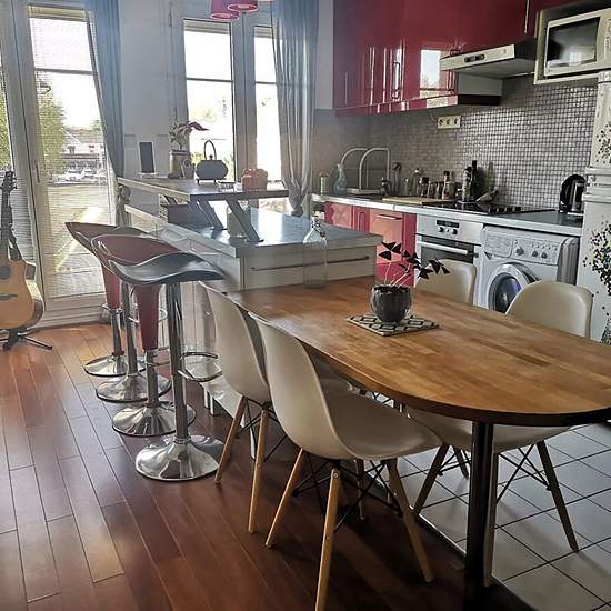VILLAGE CENTRE. Charming 3-room through apartment of 60 m², with a balcony with no overlooking and an open view. Fully south-facing, it comprises: entrance with closet, fitted kitchen open to the living room, hallway, 2 bedrooms with closets, fitted bathroom, separate toilet. Underground parking space and cellar. Available 17/02/2026