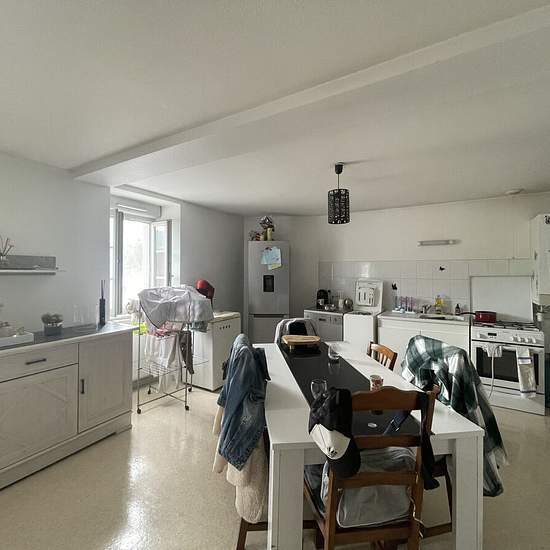 Appartement comprenant un hall d'entrée, une pièce de vie principale avec espace cuisine à aménager, un cellier, 2 chambres équipées de placards muraux, une salle de bains, WC séparés. Chauffage individuel au gaz de ville. Annexe (s) : cave, garage. Info complémentaire : parking gratuit à proximité. Disponible mi-avril 2026.1.