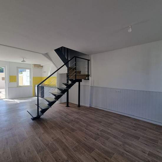Agen centre. Proche de toutes commodités. Maison de ville de 55 m² habitables. Séjour avec cuisine ouverte dotée d'une climatisation réversible. A l'étage, deux grandes chambres et salle d'eau avec Wc. A l'extérieur petit jardin avec atelier. Etat des lieux établis par huissier de justice. Loyer 650 euros Charges comprises (entretien chaudière et taxe d'ordure ménagère).