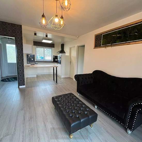 A louer maison de trois pièces, dans un état impeccable. Comprenant entrée, séjour/cuisine aménagée, salle d'eau, wc ind, deux chambres, cellier. Quartier calme et agréable, non loin des commodités. Ecole maternelle et primaire à 5 min. Jardin très bien entretenu de 614m² au total. Loyer mensuel 780€ Honoraires de location en sus charge locataire 682€