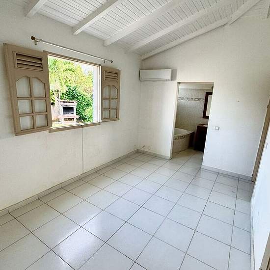 Villa de type T4 non meublée BAIE MAHAULT. Une villa indépendante de type T4 non meublée composée d'un séjour, une grande cuisine ouverte aménagée et équipée (four, micro-onde, plaque), une buanderie attenante, deux chambres climatisée en rez de chaussée dont une suite parentale avec sa salle de bain/wc et un dressing, un dégagement, un wc indépendantavec lave mains et l'autre chambreavec une salle d'eau. Une terrasse couverte, un jardin clôturé avec piscine, un garage. Eau électricité entretien du jardin et de la piscine à la charge du loca...