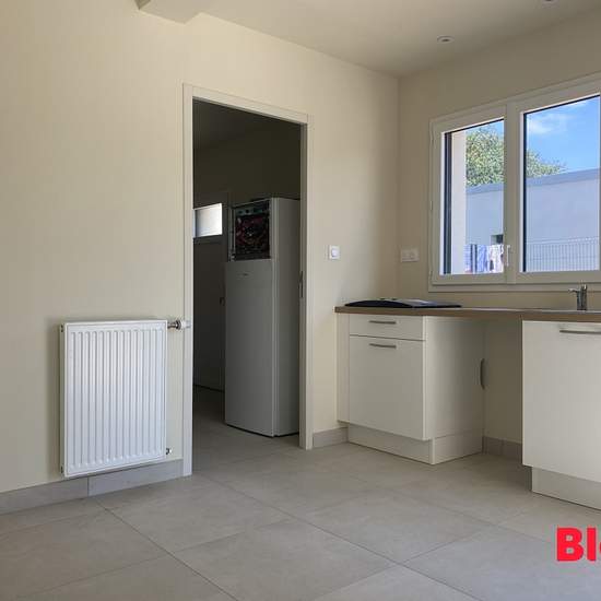 A LOUER CHEZ BLOT IMMOBILIER BAIN DE BRETAGNE - MAISON INDIVIDUELLE DE 2024 - TYPE 4 - 3 CHAMBRES A Bain de Bretagne, dans le lotissement de LA CLAIRIERE DE LA FERRONNAIS, belle maison individuelle neuve de 112 m² sur un terrain de 422 m², comprenant au RDC : un grand séjour/salon, une cuisine aménagée et équipée (four, hotte, plaque de cuisson, meubles bas), un bureau, une salle d'eau avec WC, une buanderie donnant accès au garage. A l'étage, vous découvrirez 3 belles chambres dont une avec dressing, une salle de bains et des WC séparés. Li...
