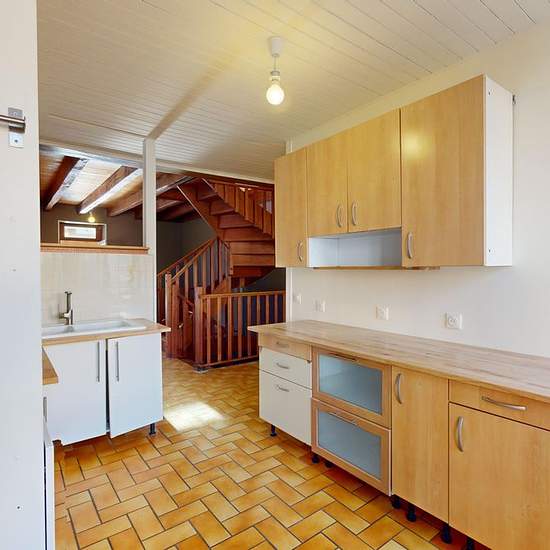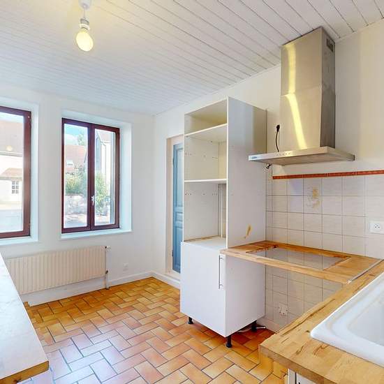 A Beire-le-Châtel, route de Dijon, maison mitoyenne d'un seul côté type 5. Elle se compose d'un grand salon-séjour de 70m2, ouvert sur une cuisine aménagée. A l'étage, deux grandes chambres avec placards intégrés, salle de bains avec WC. Au dernier niveau, une chambre avec WC et point d'eau. Un sous-sol complet avec une pièce pouvant faire office de quatrième chambre avec salle d'eau et WC, chaufferie, cave et grand garage. Le tout sur un terrain de 395m2. Chaudière gaz neuve, nouvelle génération. Double vitrage PVC et bois. Disponible le 11...