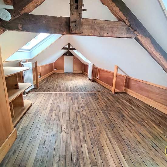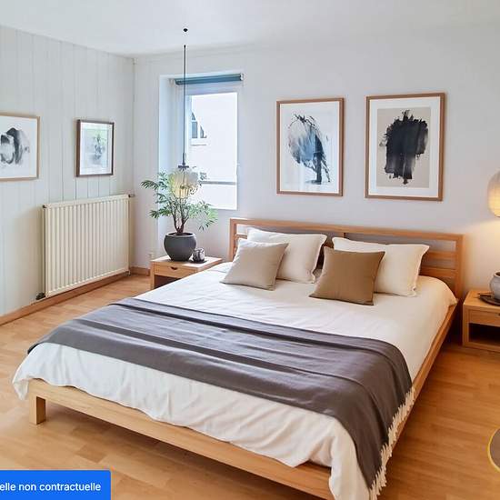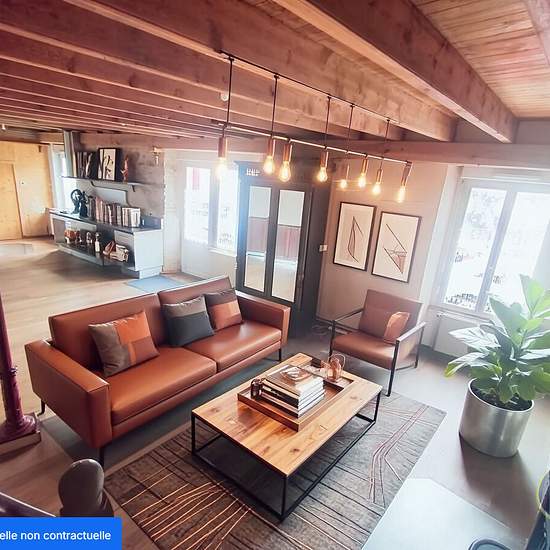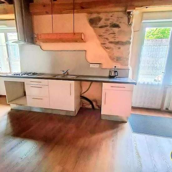 Au coeur de son bourg, maison-appartement coup de coeur avec beaucoup de cachet composée d'une belle pièce de vie avec cuisine aménagée et semi- équipée, cheminée insert, un wc et une cave. À l'étage : 2 chambres, salle d'eau avec wc, dressing. Un grenier aménagé pouvant servir de chambre. Libre de suite.