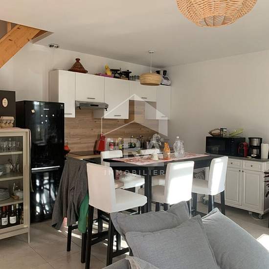 Chateau le Pian, dans un cadre athypique, maison de type T 03 de 62.14 m² habitable comprenant au rdc : 1 entrée donnant sur pièce principale avec cuisine ouverte aménagée et équipéé ( Meubles haut bas / plaque de cuisson/ hotte ), 1 placard sous escalier, 1 cage d'escaliers avec pallier donnat sur 2 chambres, 1 wc, 1 salle d'eau avec cabine de douche et vasque avec sous meuble. 1 cours privative de 15 m², 2 places de parking ,1 parc commun à disposition. Proche de toutes commodités et de BORDEAUX CENTRE. Loyer : 980 euros Charges : 100 euro...