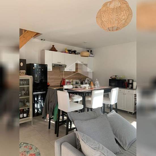 Chateau le Pian, dans un cadre athypique, maison de type T 03 de 62.14 m² habitable comprenant au rdc : 1 entrée donnant sur pièce principale avec cuisine ouverte aménagée et équipéé ( Meubles haut bas / plaque de cuisson/ hotte ), 1 placard sous escalier, 1 cage d'escaliers avec pallier donnat sur 2 chambres, 1 wc, 1 salle d'eau avec cabine de douche et vasque avec sous meuble. 1 cours privative de 15 m², 2 places de parking ,1 parc commun à disposition. Proche de toutes commodités et de BORDEAUX CENTRE. Loyer : 980 euros Charges : 100 euro...