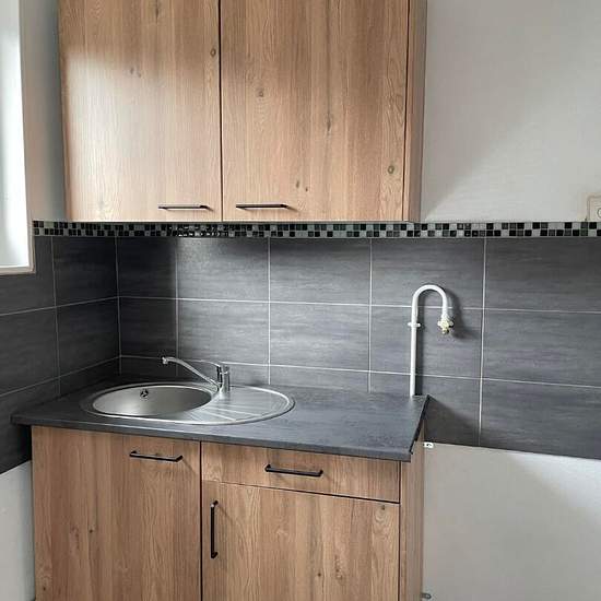 Maison renovée de 59 m² offrant un salon, une cuisine aménagée, une salle d'eau, un wc, deux chambres, une terrasse, un jardin et une dépendance. Chauffage gaz. DPE : D Disponible de suite.