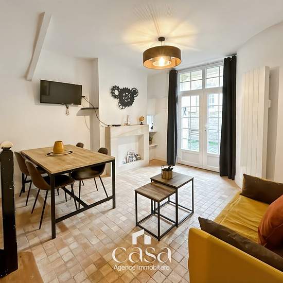 Votre agence immobilière Casa Gestion vous propose en exclusivité à la location une maison en triplex meublée très charmante, idéalement située en plein centre-ville de Caen, dans l’une des rues les plus prisées et authentiques de la ville. RUE FROIDE : Une jolie maison ancienne entièrement meublée de trois pièces principales de 48m2, qui offre un cadre de vie chaleureux et fonctionnel, composée comme suit: une entrée, un grand séjour, une cuisine aménagée et équipée (four, plaque, hotte, frigo...). A l'étage, un palier avec dressing, un wc,...
