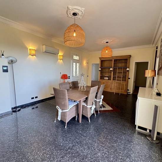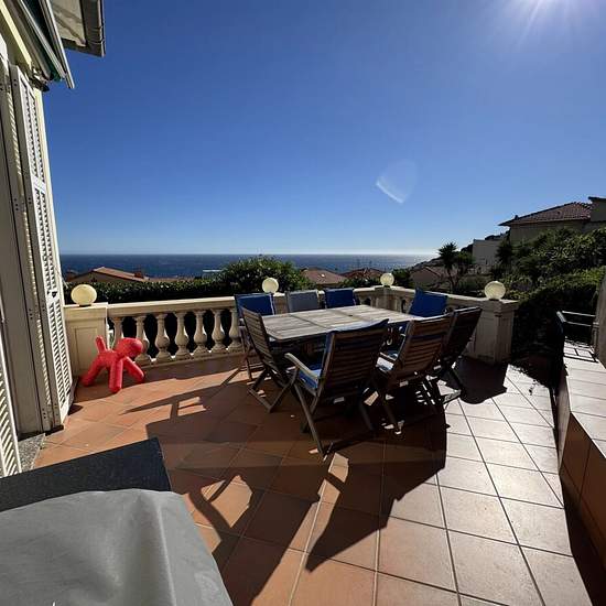 A propos de ce bien Limitrophe Monaco, 'Les Salines', très agréable villa de 2 chambres, meublée avec goût, offrant un environnement paisible et reposant, avec vue mer. La villa se compose d'un salon avec cheminée, une salle à manger donnant sur une véranda avec accès direct au jardin, une cuisine indépendante, 2 chambres, une salle de bains avec WC. Un grand jardin plat avec un bel espace piscine, très calme, sans vis à vis. Climatisation. Accès pédestre. Location d’un an en résidence secondaire.
