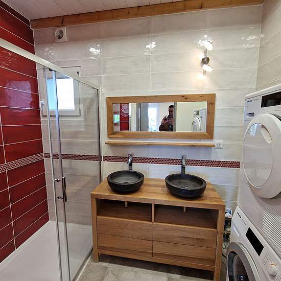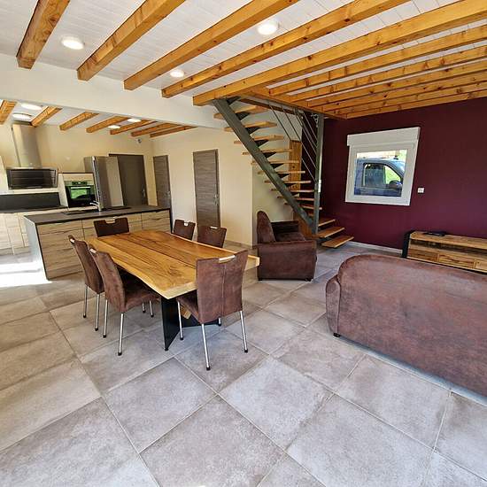 Available at the end of February. Located on the Menthières site, a detached T3 duplex house of 91.34 m2 comprising a living room with sofas, TV unit, table and chairs. Equipped kitchen, a shower room with shower, washing machine and tumble dryer, WC. Upstairs: 2 bedrooms with beds and furniture, a shower room with shower, WC. 1 garage, the white door on the right. Plot. Terrace. Tank gas heating payable by the tenants. The tenant is responsible for underfloor heating and hot water by GAS, cold water, and the refuse collection tax. Rent: €1,...