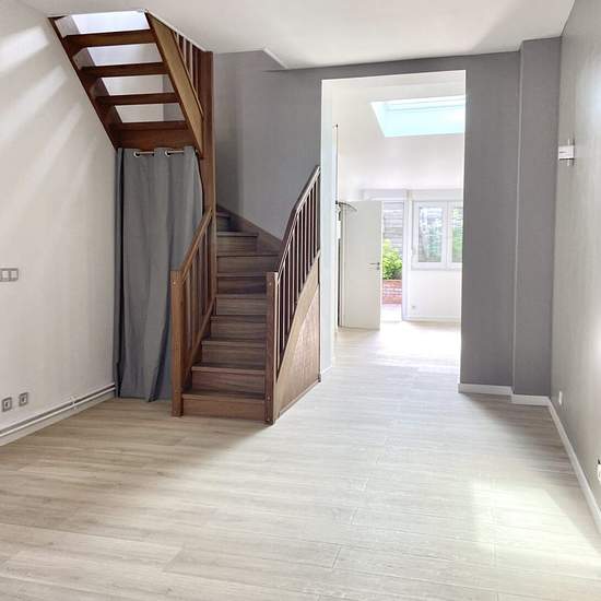 À louer, maison de ville type 1930 entièrement rénovée, offrant de beaux volumes et un standing de qualité. Idéalement située à proximité immédiate du centre de Croix et des commodités, cette maison lumineuse développe environ 90m² répartis sur trois niveaux. Elle se compose d’un salon-séjour agréable, d’une cuisine lumineuse et de WC indépendants au rez-de-chaussée, d’une chambre parquetée, d’une salle de bains et d’un second WC au premier étage, ainsi que de deux espaces nuit parquetés, dont un en duplex, au dernier niveau. Une jolie cour ...
