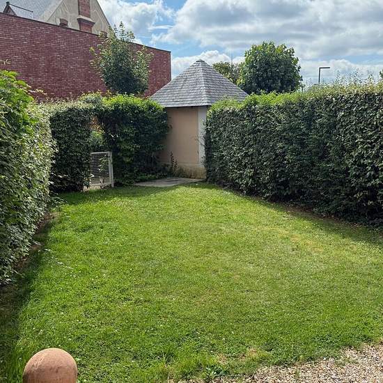 Maison À Louer. A quelques mètres des plages de Cabourg, joli cottage comprenant en rez de chaussée un séjour - salon avec cuisine, un wc. A l'étage : deux chambres, salle d'eau et wc. Balcon. Jardin Parking extérieur privatif