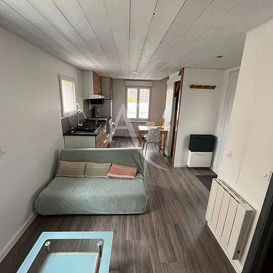 Bien rare sur le marché ! Maison de ville meublée entièrement rénovée en 2021 Elle se compose au rdc : d'un séjour avec cuisine ouverte, salle d'eau et wc séparé A l'étage une chambre et un bureau Une place de parking Quartier calme et pavillonnaire. Disponible début novembre.