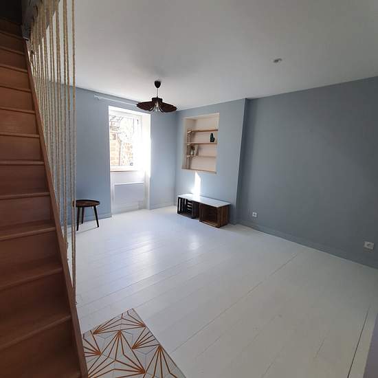 Proche du centre ville dans un quartier calme, maison de ville entièrement rénovée avec cour intérieure. Elle se compose en rez de chaussée d'une cave et d'une buanderie et au 1er étage d'un salon et d'une cuisine équipée donnant sur une agréable terrasse exposée Est. À l'étage supérieur on trouve une chambre et une salle d'eau avec WC. Au dernier étage une deuxième chambre mansardée est aménagée. Maison lumineuse, meublée et libre courant Janvier 2026. Loyer de 550€ + 10€ de charges.