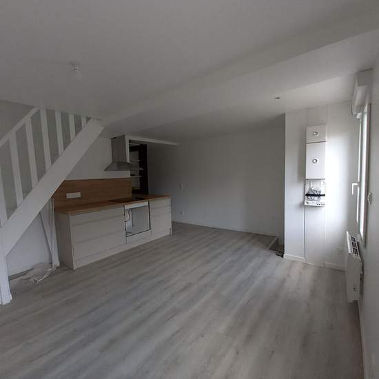 A LOUER, maison entièrement rénovée offrant au rez de chaussée : un séjour avec cuisine ouverte, une buanderie, un wc, au 1er étage : un palier pouvant servir de bureau ou dressing, une chambre, une salle de bain avec wc, au 2éme étage sous comble une chambre. Une cave. Disponible de suite DPE : E. Ref : AF1196. Loyer 700€HC Eau + électricité a la charge du locataire Pas de place de parking, ni jardin Contacter Angélique au Conditions d'accès : bien soumis à assurance loyers impayés, conditions d'accès. 1er cas : salarié(s) (garant refusé) ...