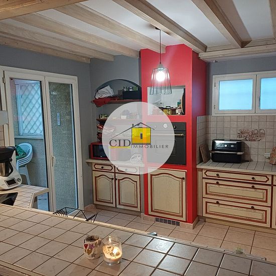 Charmante maison meublée de 112 m² (99 m² habitables), secteur calme de Frontonas avec cour privative et dépendances, comprenant : Au RDC : Une belle pièce principale de 35 m², avec coin cuisine meublé et équipé (four/frigo/plaque de cuisson), une suite parentale (13.92 m²) avec salle de bains (baignoire et douche), un WC. A l'étage : une mezzanine, deux belles chambres avec placard (10.15 m² + 10.14 m²), une salle d'eau avec WC. A l'extérieur : une grande terrasse exposée Ouest avec store banne et une partie couverte, une cour pour stationn...