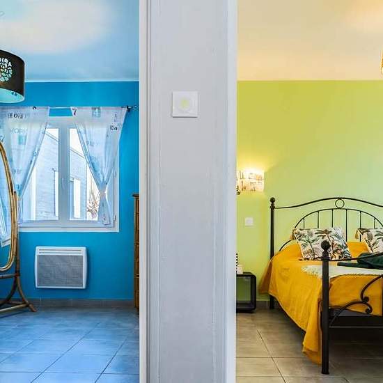 BAMBOU charmant T3 meublé de 50 m² avec terrasse privative, situé au cœur du village pour séniors autonomes. Résidence calme et sécurisée avec grand jardin fleuri, piscine partagée et parking privé. Clim réversible – cuisine équipée – douche à l’italienne – 2 chambres confortables. Idéal pour profiter d’un beau jardin et d’une piscine sans entretien. Quelques animaux bienveillants (chien, chat, tortues) partagent ce lieu paisible Propriétaire présente sur place, assurant entretien, sécurité et ambiance conviviale. Ginestas (11120) entre Narb...