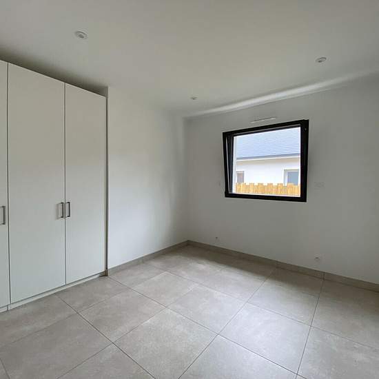 SUR GRANDCHAMP des FONTAINES A louer, maison de 2020, Comprenant de Plain Pied : Un hall d'entrée, une grande pièce de vie avec cuisine aménagée ET équipée de 45 m² donnant sur deux terrasses (dont une couverte), un dégagement dessert trois belles chambres avec placards aménagés, une salle d'eau et un WC indépendant. Un garage attenant et communicant avec une buanderie - lingerie. Le tout sur terrain clos de 504 m². Chauffage et chauffe eau par PAC, portail électrique, interphone.... Hervé DUREPERRE (EI) Agent Commercial - Numéro RSAC : 2018...